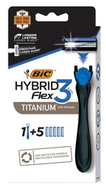 BIC Flex 3 Hybrid Men's 3-Blade Titanium Razor 1­ Handle and 5 Cartridges