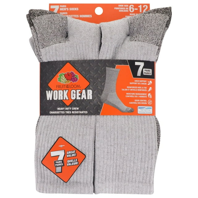 Fruit of the Loom Men's 7 Pair Work Gear Crew Socks, Size 6-12