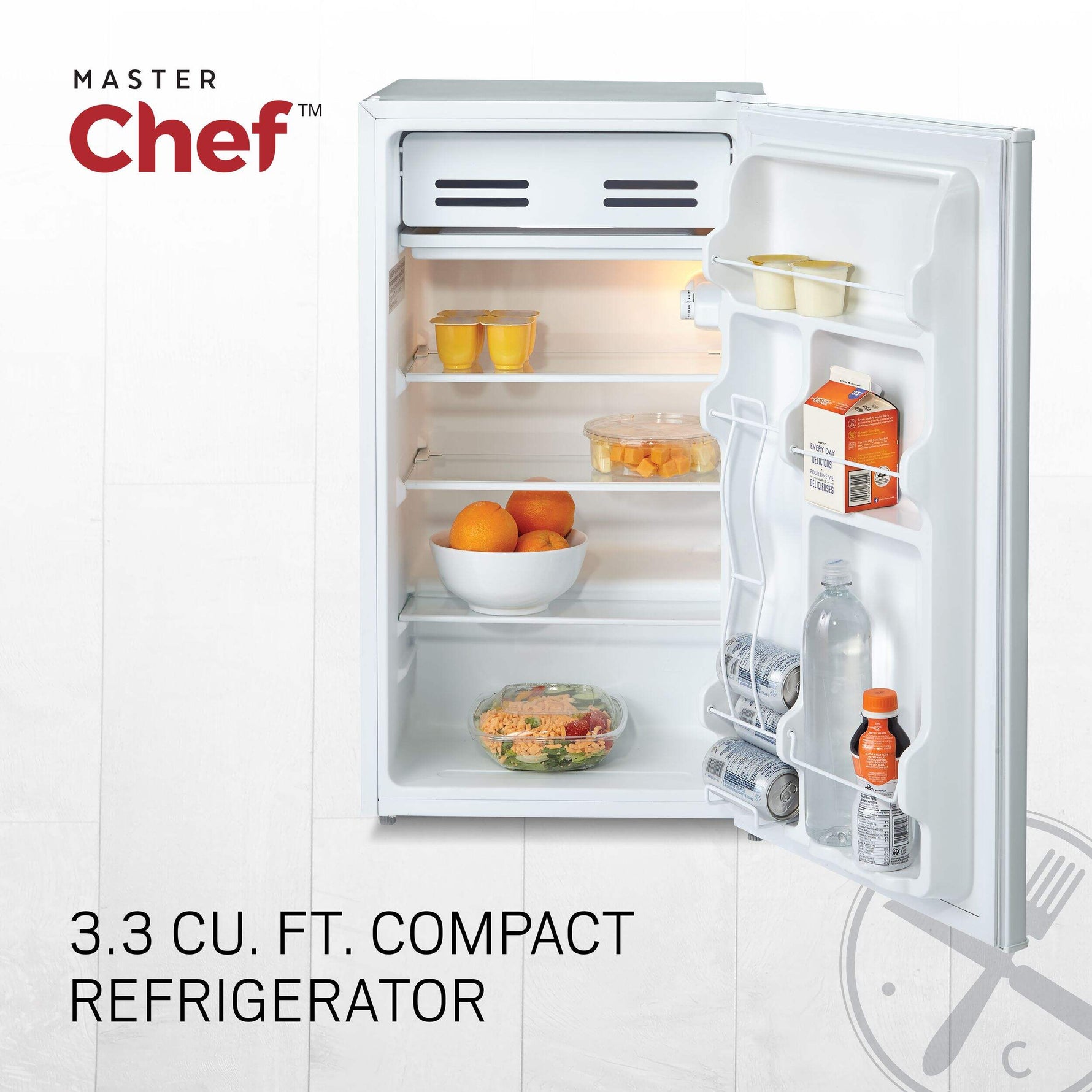 MASTER Chef Energy Star Compact Refrigerator with Internal Freezer & Reversible Door for Dorms/Bedroom, 3.3-cu.ft., White